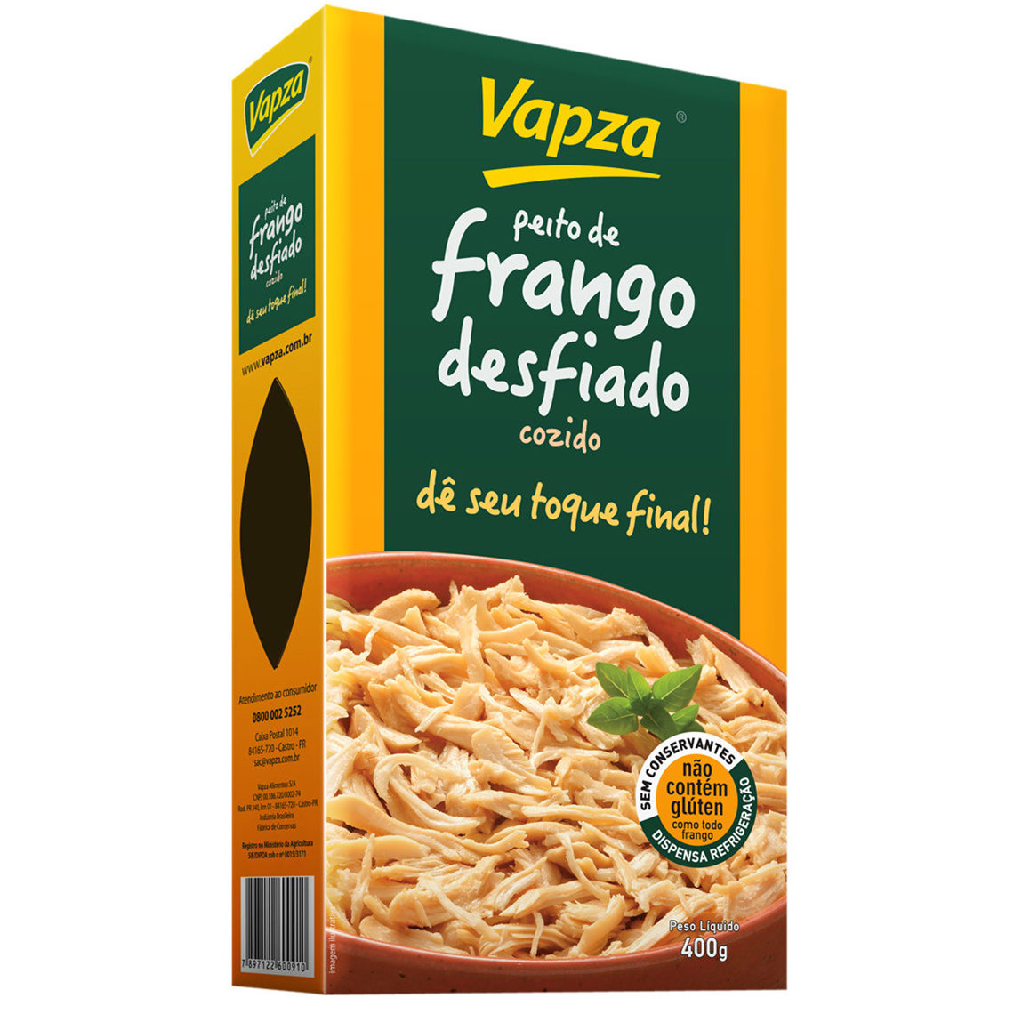 Peito de Frango Desfiado Cozido Vapza 400g