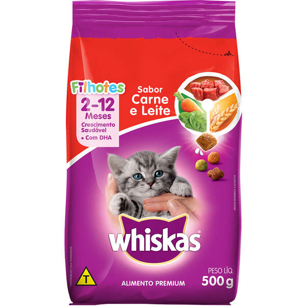 Ração para Filhotes Whiskas Carne e Leite 500g